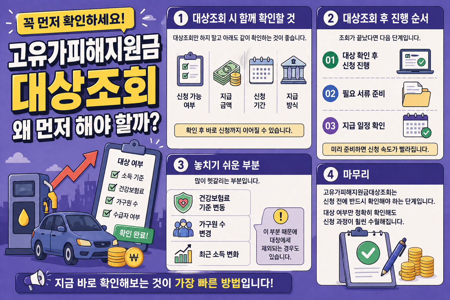 고유가피해지원금대상조회는 신청 전에 반드시 확인해야 하는 단계입니다.